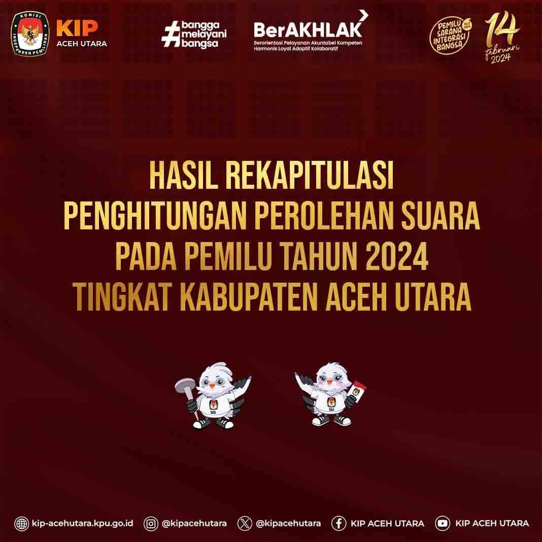 HASIL REKAPITULASI PENGHITUNGAN PEROLEHAN SUARA PADA PEMILU TAHUN 2024 TINGKAT KABUPATEN ACEH UTARA