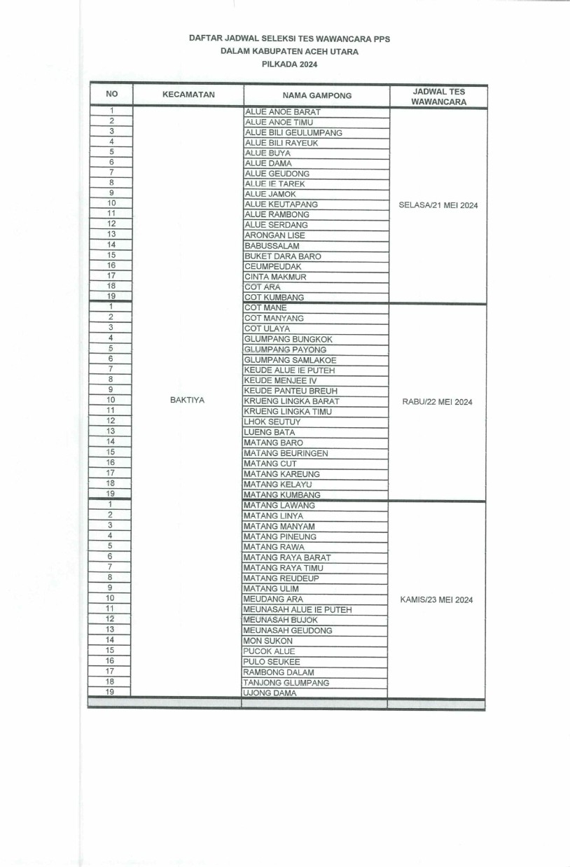 JADWAL WAWANCARA CALON PPS DALAM KABUPATEN ACEH UTARA DALAM PILKADA TAHUN 2024 Senin, 20 Mei 2024 23:36 626 DOWNLOAD DISINI Bagikan: Dilihat 626 Kali.