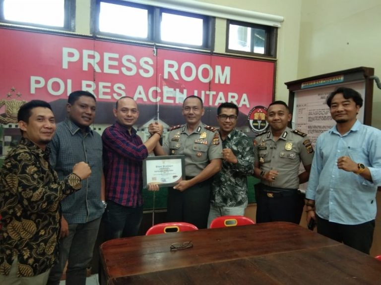 Komisi Independen Pemilihan (KIP) Kabupaten Aceh Utara menyerahkan piagam penghargaan Pemilu 2019 kepada Polres Aceh Utara yang berlangsung pada hari ini Kamis, 9 Januari 2020.