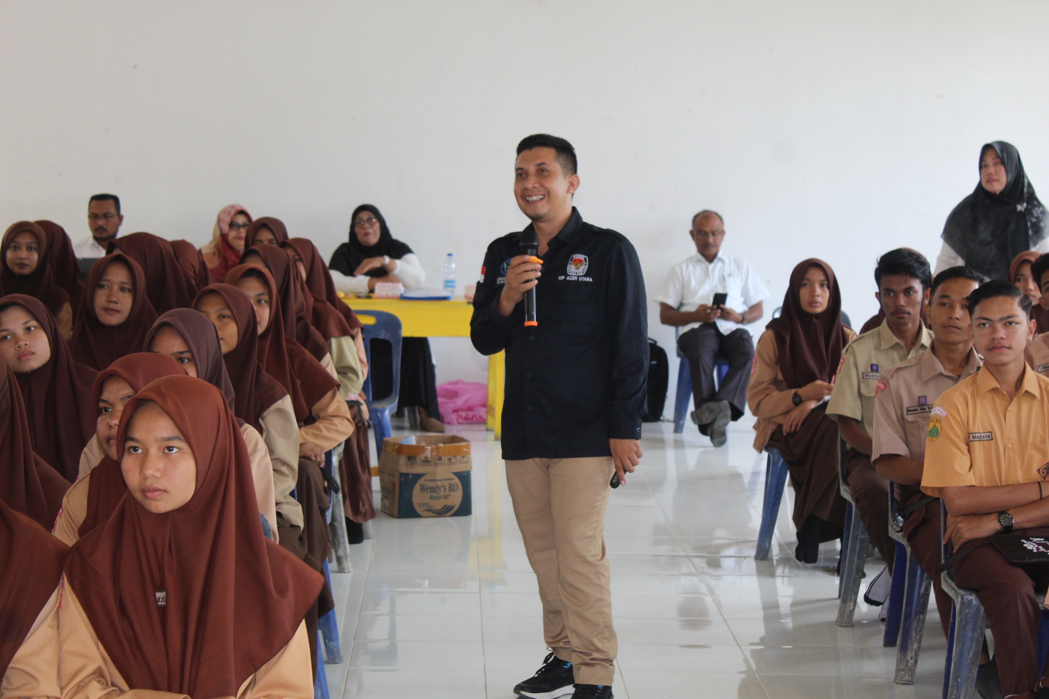 Muhammad Usman Narasumber Pada Kegiatan Sosialisasi Pemilu yang Dilaksanakan Oleh Badan Kesbangpol Kabupaten Aceh Utara di SMA N1 Dewantara