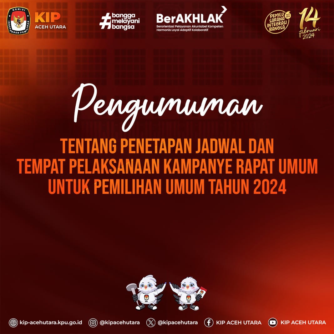 Lhoksukon- Berikut kami Sampaikan Pengumuman Pentapan Jadwal dan Lokasi Kampanye Rapat Umum Untuk Pemilu 2024