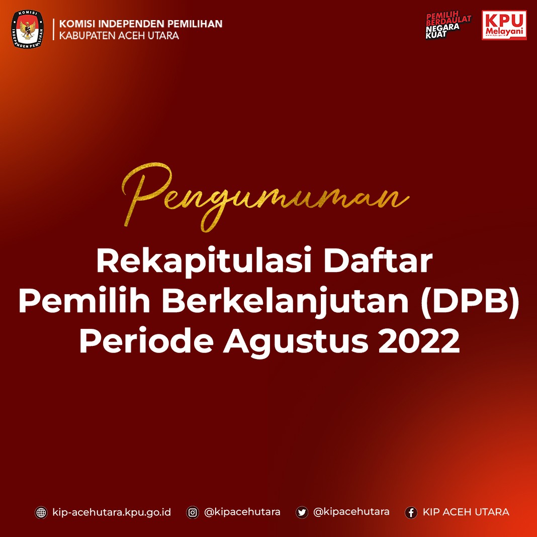 Rekapitulasi Daftar Pemilih Berkelanjutan (DPB) Periode Agustus 2022 Selasa, 30 Agustus 2022 00:00 383 Rekapitulasi Daftar Pemilih Berkelanjutan (DPB) Periode Agustus 2022 Bagikan: Dilihat 383 Kali.